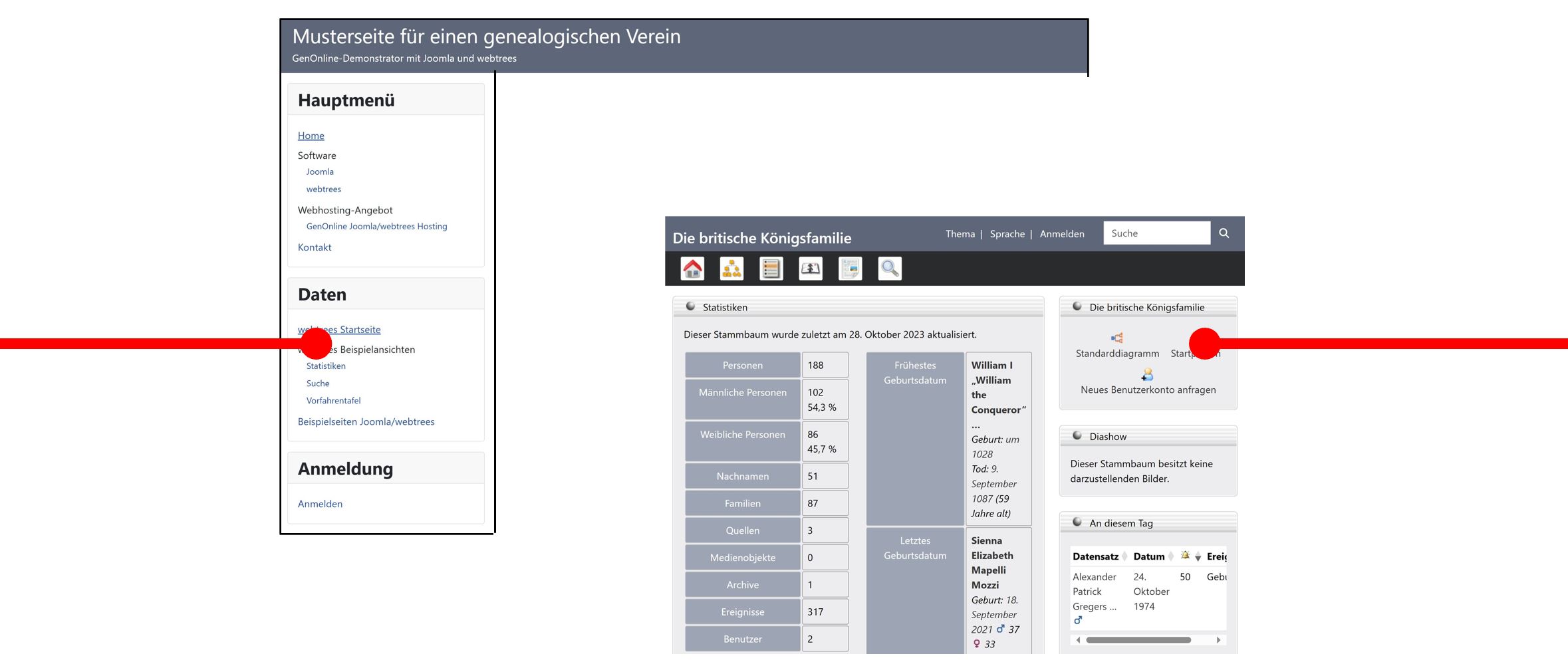 ... beim GenOnline-Demonstrator für die Kombination des Joomla Content Management Systems mit dem Genealogie-Programm webtrees.